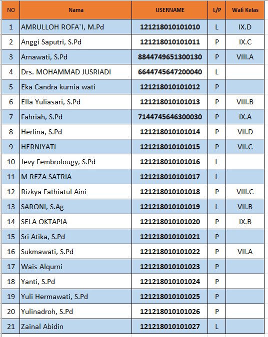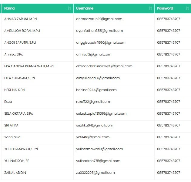 Bapak ibu dewan guru dibawah ini merupakan akun untuk login ke aplikasi RDM atau raport digital madrasah,