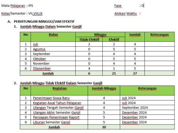 ANALISIS ALOKASI WAKTU TAHUN AJARAN 2024/2025 Mata Pelajaran : IPS Fase : D Kelas/Semester : VII,VIII,IX Alokasi Waktu : No Bulan Minggu Jumlah Keterangan Tidak Efektif Efektif 1 Juli..