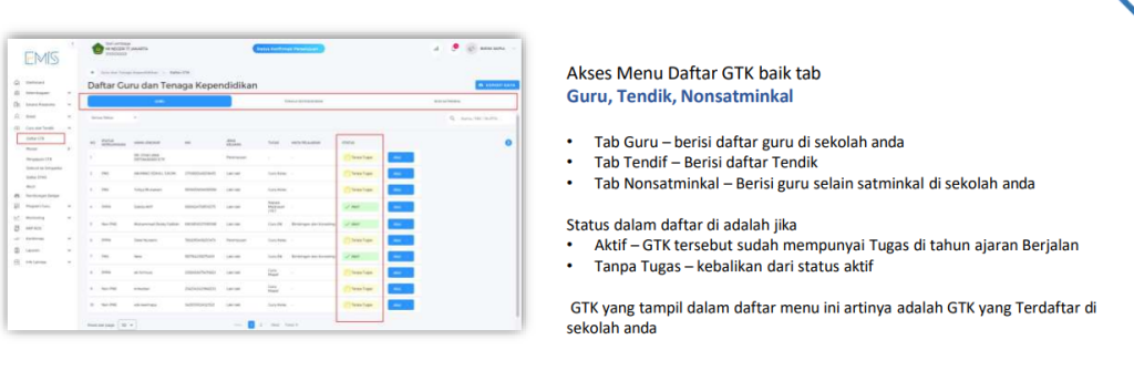 Akses Menu Daftar GTK / aksi/ Ubah, akan menemukan tab seperti