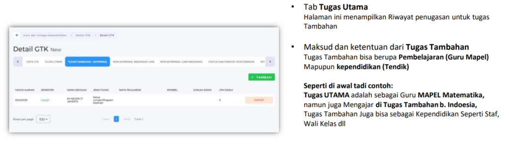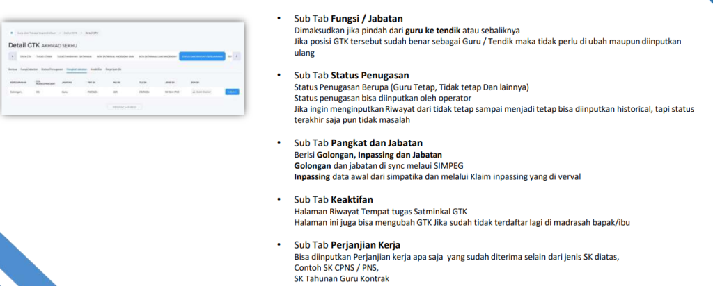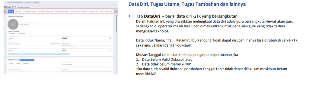 Data Diri, Tugas Utama, Tugas Tambahan dan lainnya