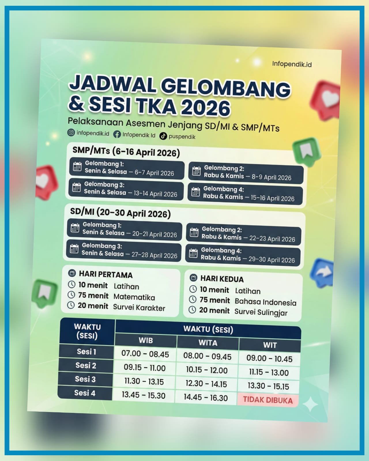 TANGGAL 6-16 APRIL 2026 TKA TINGKAT SMP/MTS