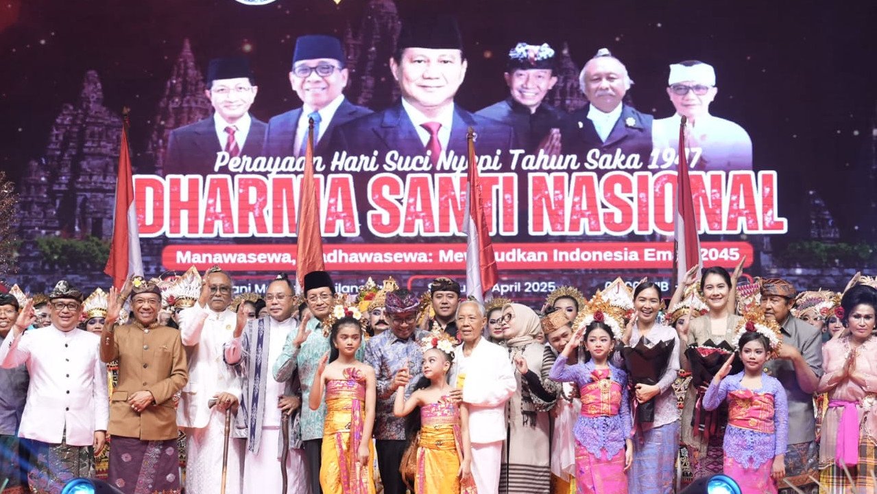 Acara Dharmasanti Nasional 2025 dihadiri ribuan umat Hindu dari berbagai penjuru tanah air dan dimeriahkan dengan pertunjukan seni budaya dari Bali, Jawa, Sunda, Tamil, serta penampilan musisi Balawan dan penyanyi Maydea.