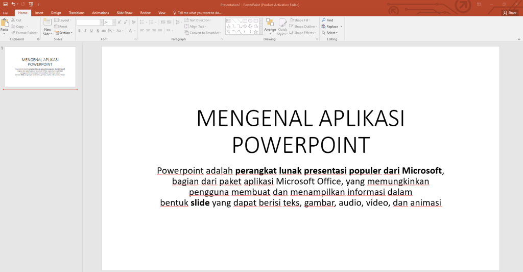 PRAKTEK KE 1 POWERPOINT (RIBBON HOME)