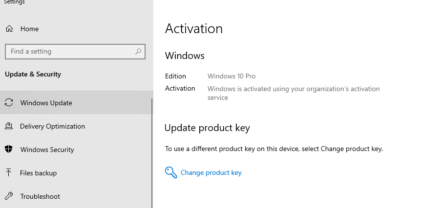7. Kembali ke jendela Activation tadi, kemudian pilih Change product key.